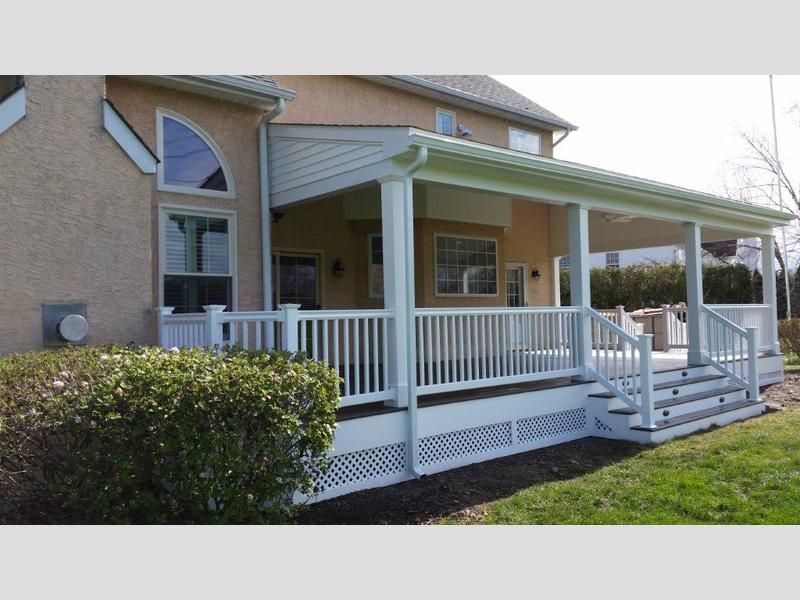 Timbertech© Legacy Series (Color is Mocha) Decking with 3000 Series Vinyl Railing and Roof Located in Phoenixville, Pa.
