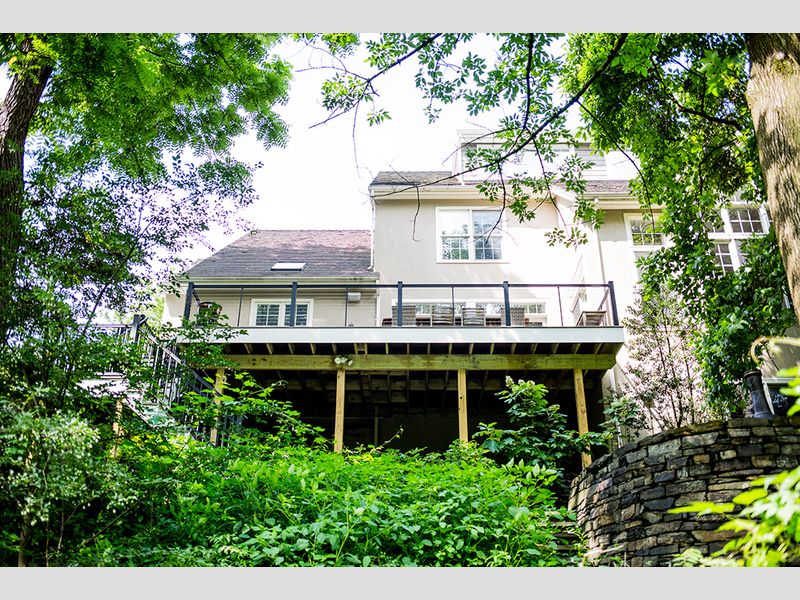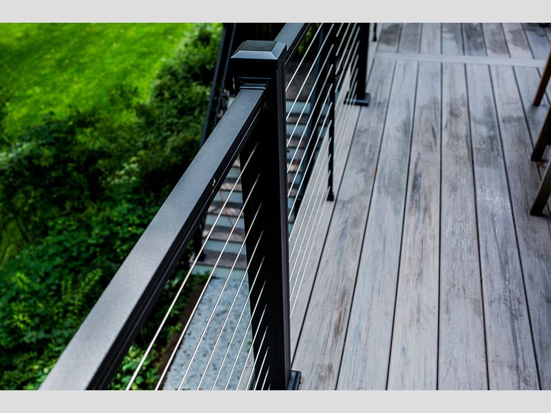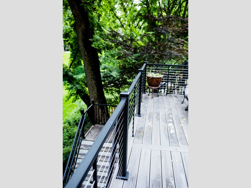 This is a custom-made Composite Deck with Cable Railing located in Wynnewood, Pa.