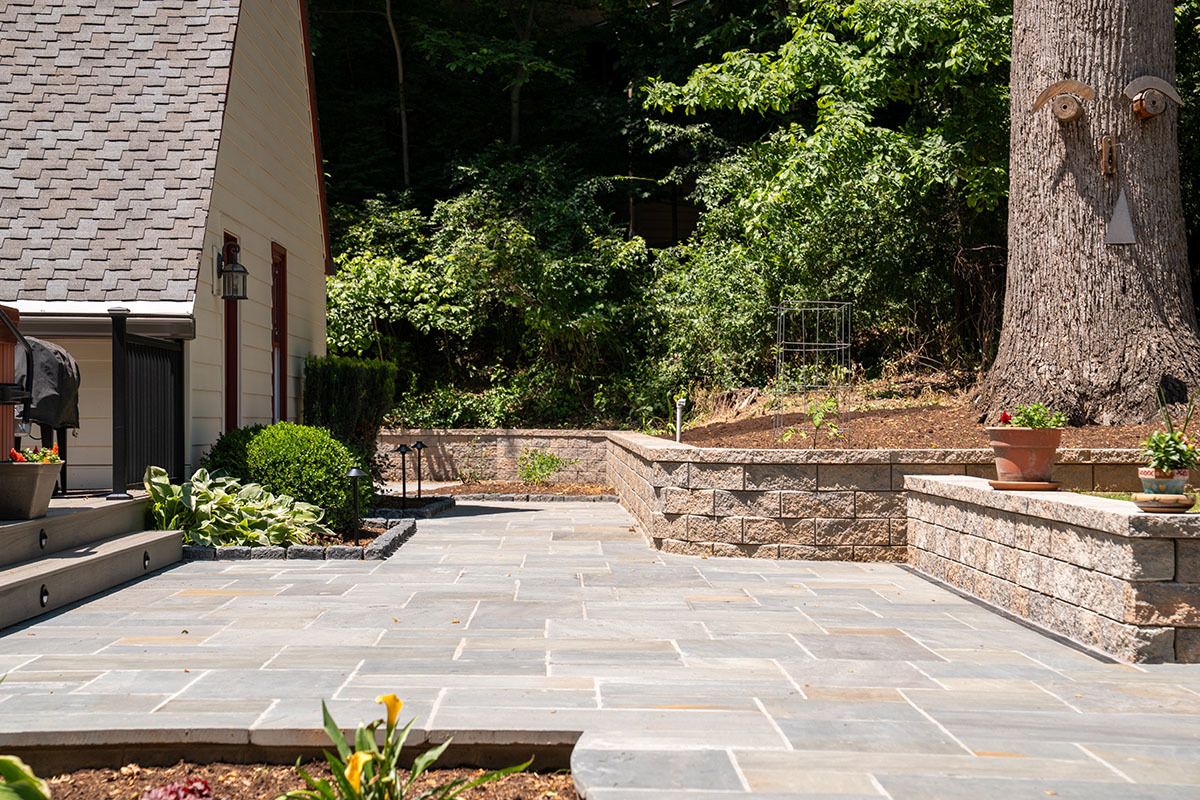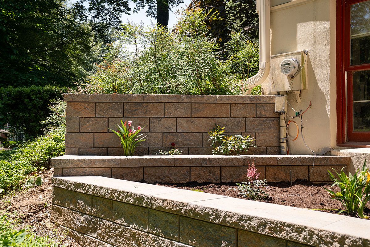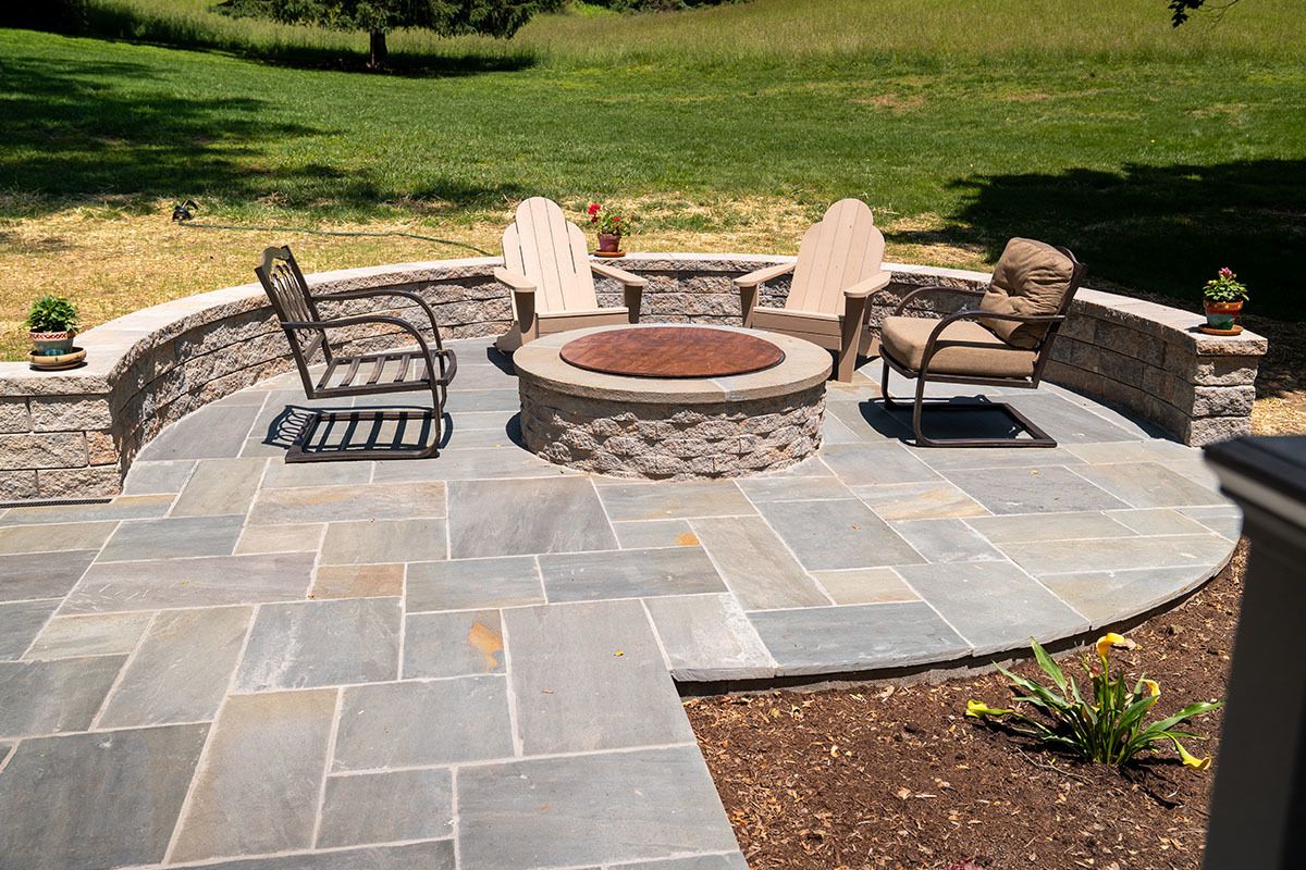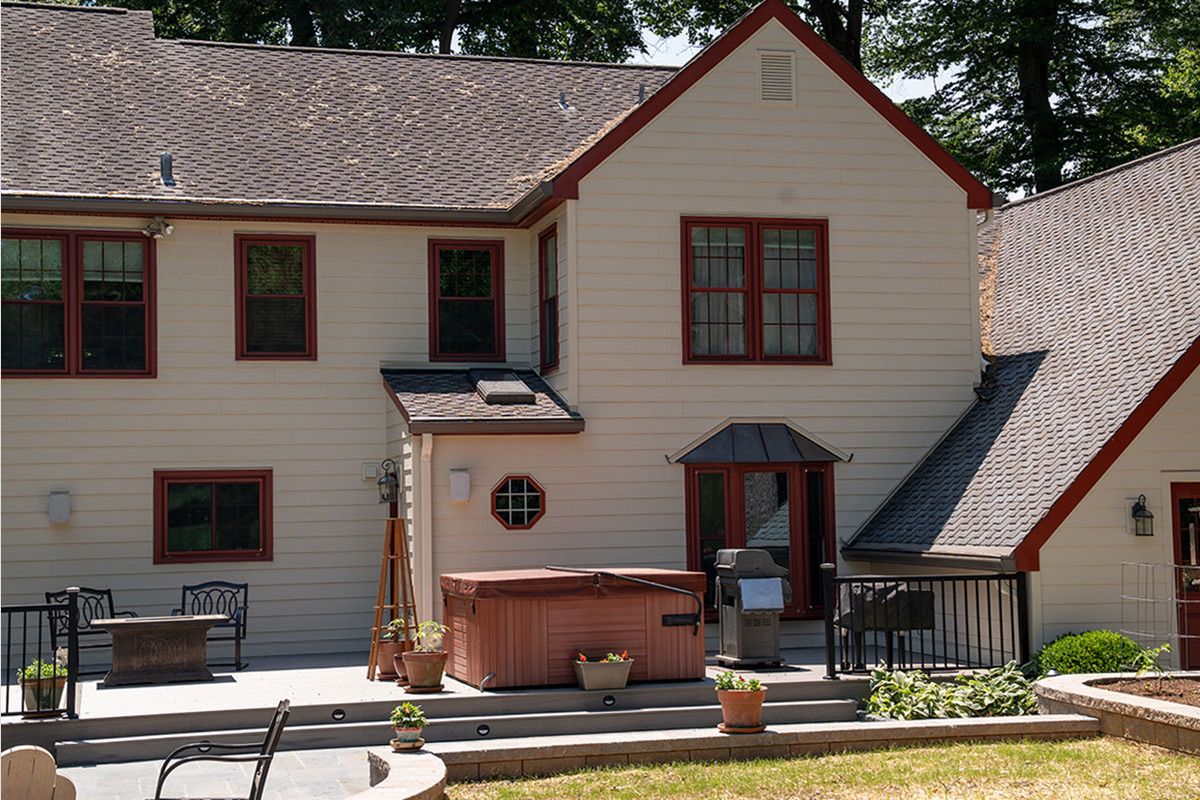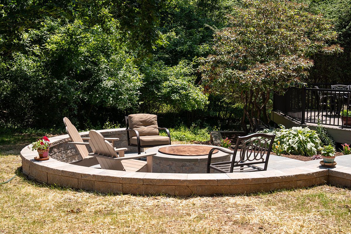 This project was located in West Chester, Pennsylvania. The siding is James Hardie and the addition of new retaining walls, Deck, Patio, and Walkway with Fire pit.