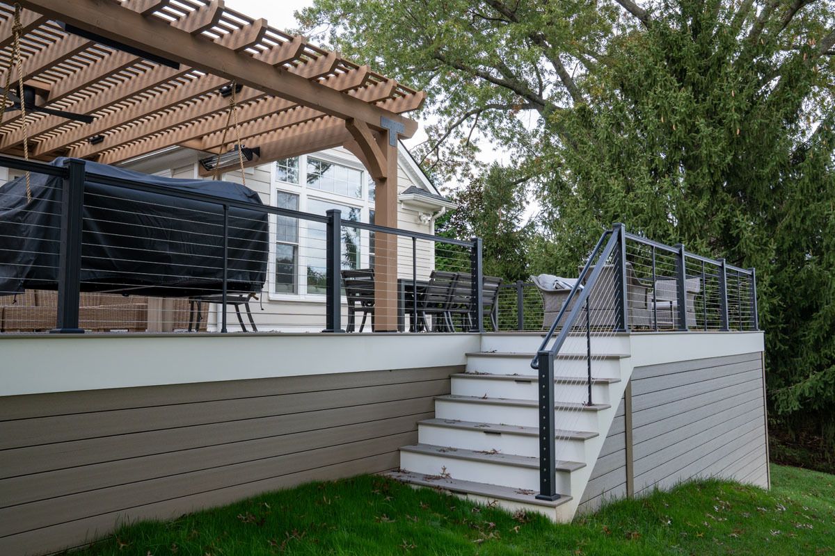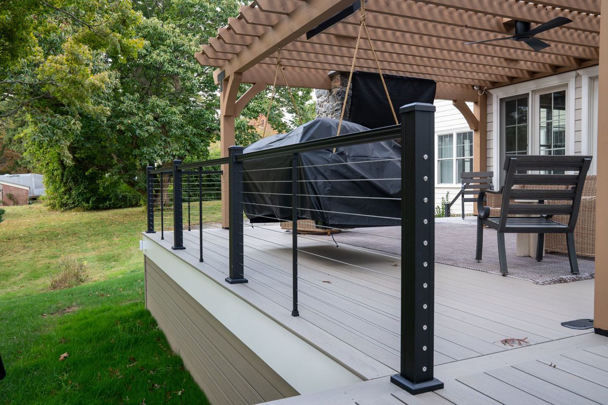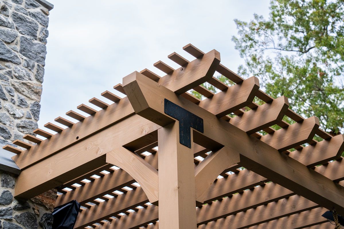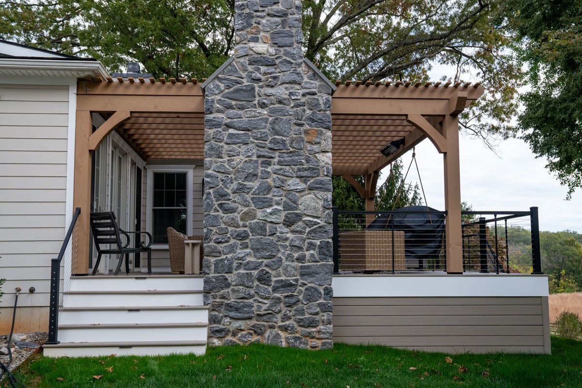 This project included the addition of a 16" x 24" tongue and groove Prestige wood ceiling. A 6' stone wall in Versetta Stone with a beautiful wood mantle. This project also included the addition of Bromic heaters for those chilly evenings.