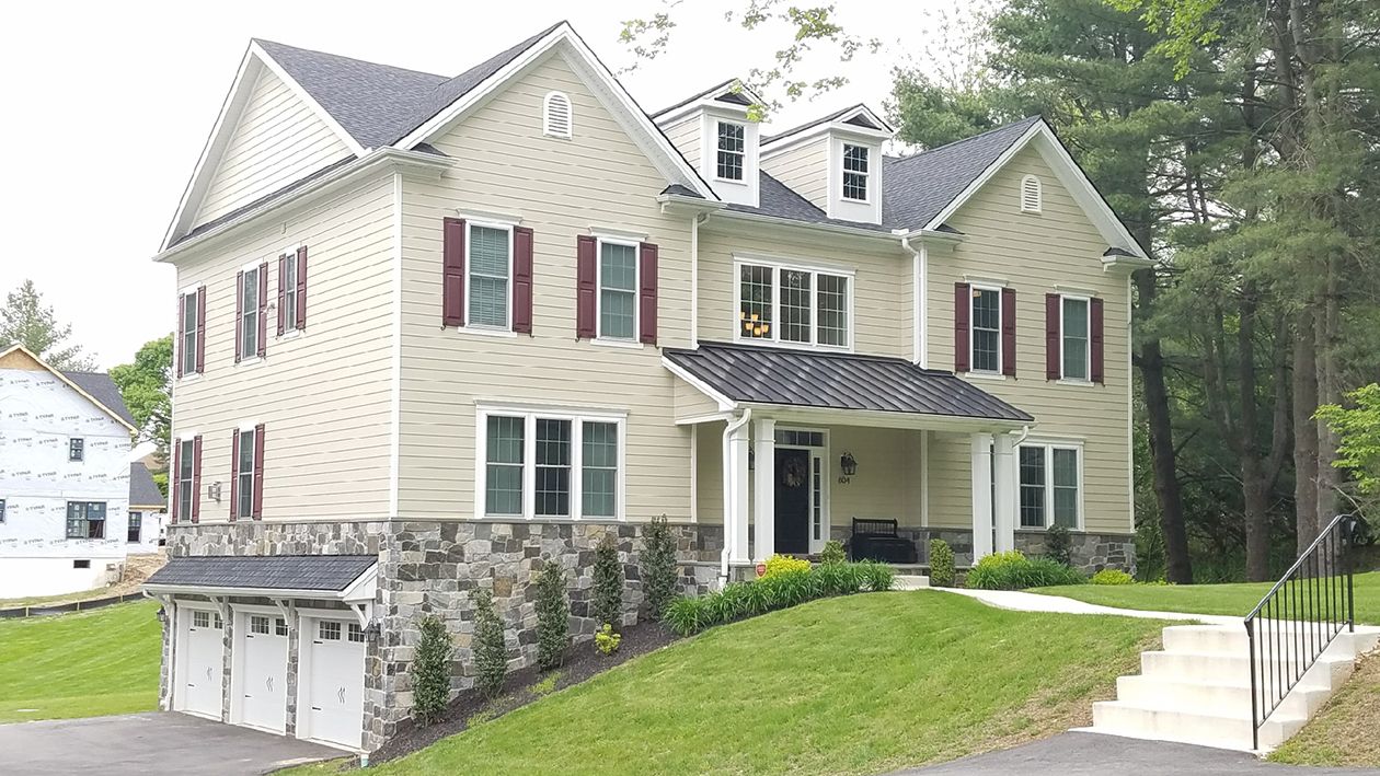 This new home was sided with James Hardie© Siding with the installation of an Asphalt Roof as well as a Standing Seam Metal roof over the entrance area.