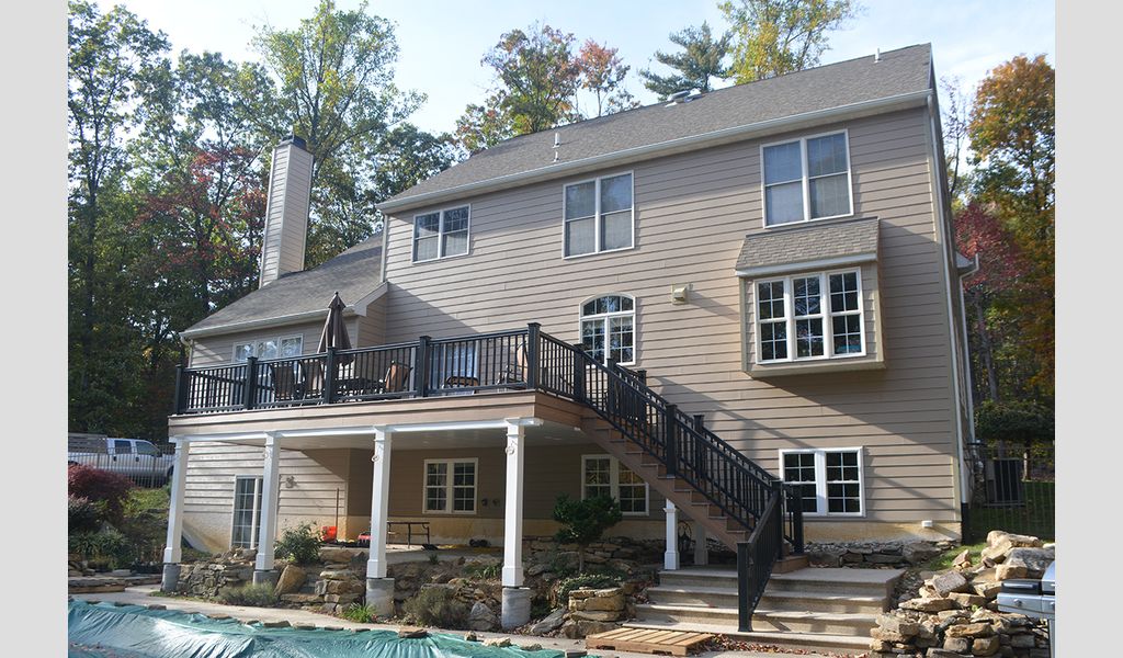 This home was sided with James Hardie© Siding, with Patio addition using Timbertech© Deck Products.